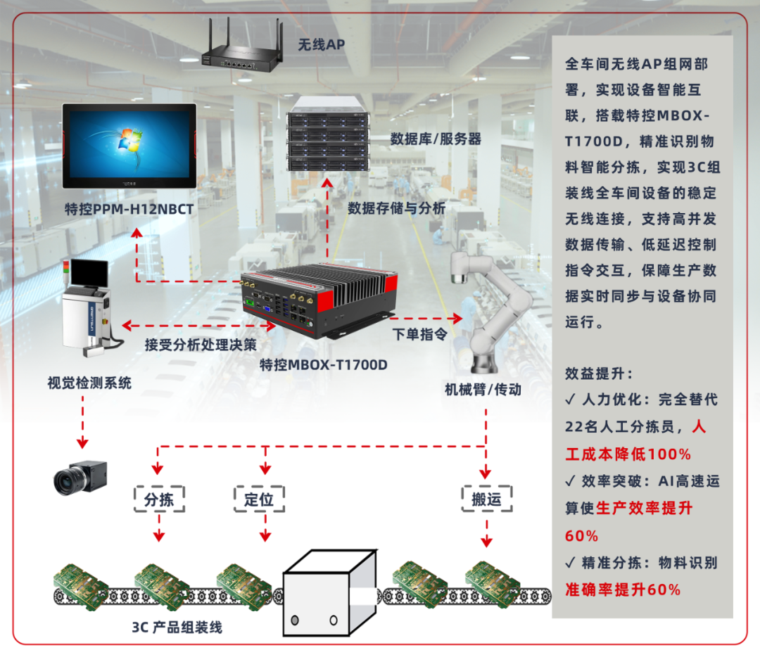 在日均處理百萬件包裹的智能倉庫,特控邊緣計算設備與工業平板構建起 “數字中樞”。MBOX-T1700D邊緣計算控制器化身 “智慧大腦”,通過毫秒級數據處理能力,實時分析包裹重量、尺寸與目的地信息,動態規劃最優分揀路徑。