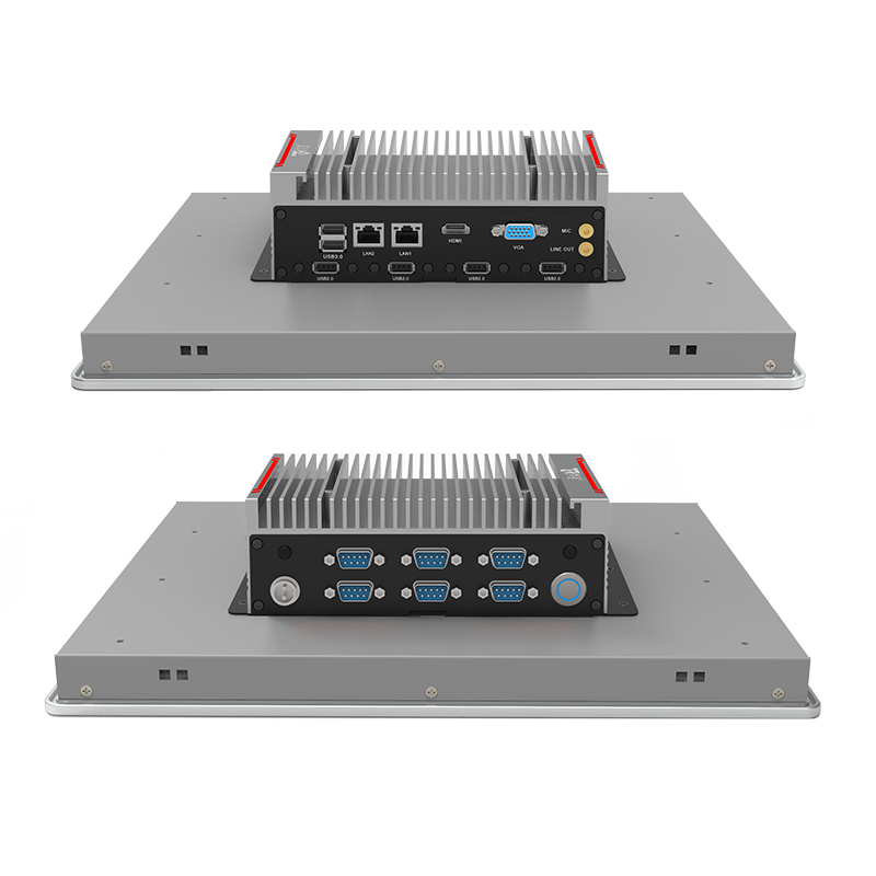 外觀設計:鋁合金一體成型,工藝精細,科技時尚低功耗:英特爾®賽揚®J1900 板載處理器,TDP 10W穩定可靠:純工業無風扇設計,大面積鋁鰭散熱,箱體材質可抗接觸式6Kv強電磁干擾;液晶屏接觸處加強型密封膠圈設計,面板防水防撞擊接口豐富:2*LAN(Intel),6*COM,1*USB3.0,5*USB2.0,1*HDMI,1*VGA,1*MIC In, 1*Line Out,1*mSata(全高,Sata信號,支持 SDD),1*2.5寸硬盤位,1*Mini PCIE(全高,PCIE+USB信號,支持WIFI或者4G)界面友好:純屏10點工規電容觸控,操作更便利
